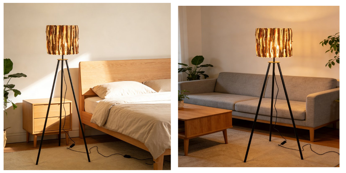 A sua silhueta alta e esguia foi especialmente concebida para maximizar o espaço vertical vazio, encaixando perfeitamente nos cantos das divisões como um candeeiro de canto eficiente, sem ocupar muito espaço na sua sala de estar. A cúpula de vime premium entrançado à mão suaviza a luz forte da lâmpada, transformando-a num brilho ambiente suave, enquanto a estrutura robusta de metal com tripé garante estabilidade e durabilidade duradouras.